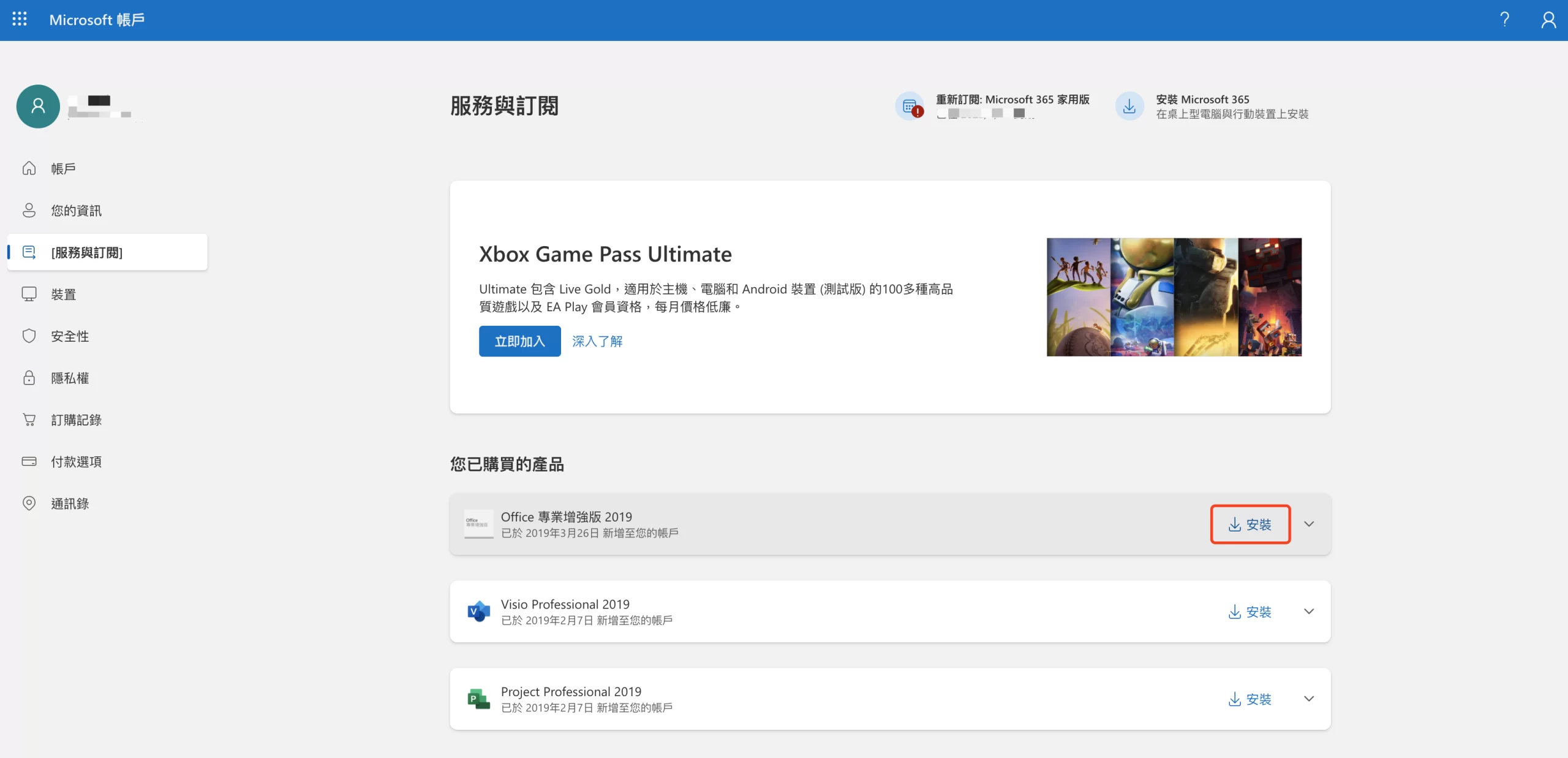 7、选择您绑定后的产品,点击安装即可。